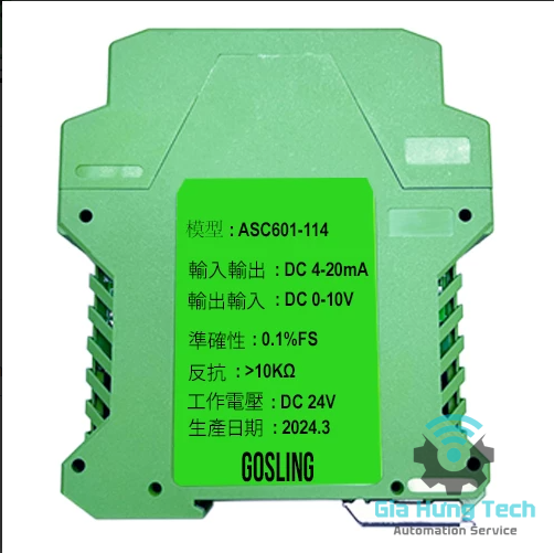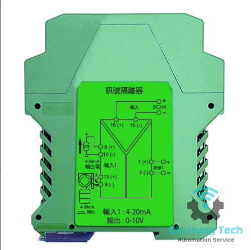Bộ chuyển đổi tín hiệu cách ly, đầu vào 4–20mA, đầu ra 0–10V
