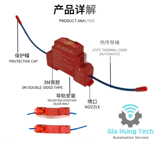 Khi nhiệt độ trong không gian kín đạt ngưỡng kích hoạt (175°C), thiết bị sẽ tự động phóng khí dung chữa cháy. Khí này ức chế phản ứng cháy, dập tắt đám lửa nhanh chóng mà không cần tác động thủ công.